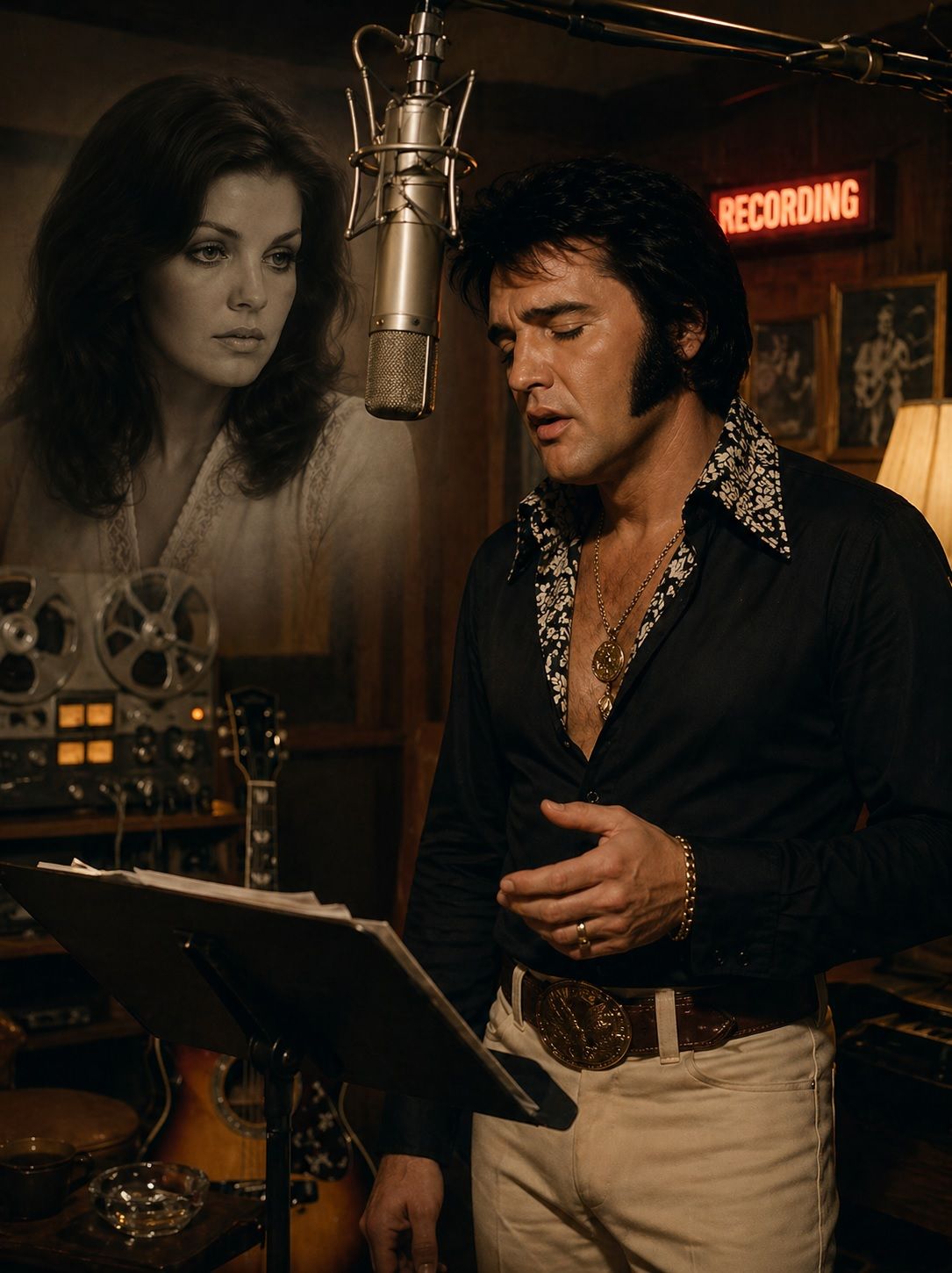 At that point in his life, Elvis was no stranger to the weight of expectation. He had already become a cultural force, a symbol of an era, a voice that defined more than just music. But behind that larger-than-life image was a man navigating something far more difficult than fame—loss. Only weeks before that recording session, his marriage to Priscilla Presley had come to an end. What had once appeared to the public as a near-mythic love story had quietly unraveled.
