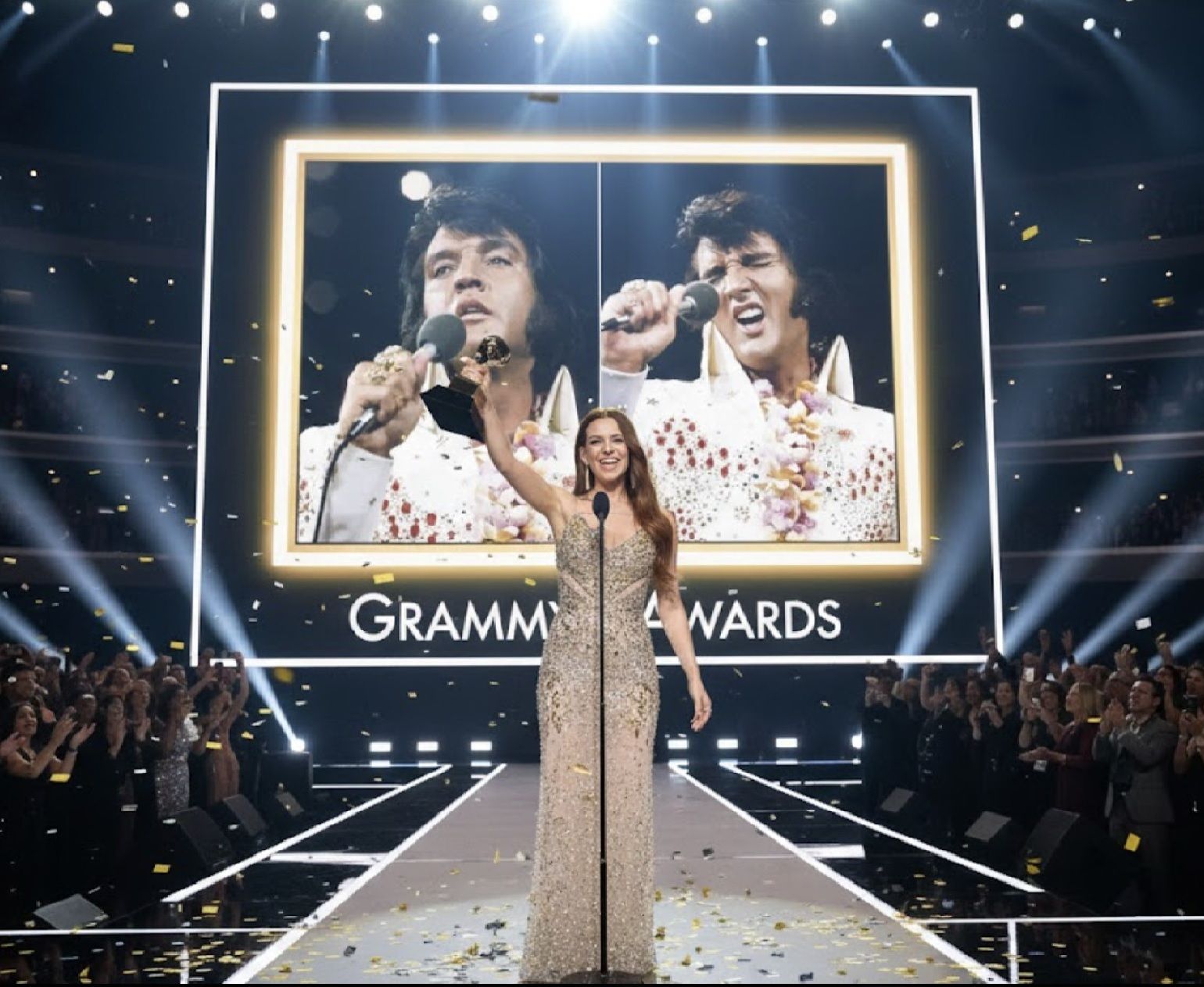 The entire arena fell silent as Riley Keough stepped onto the GRAMMY stage — and moments later, the room was in tears. Accepting the golden award on behalf of her legendary grandfather Elvis Presley, she honored his newly uncovered ballad Shattered Sky — a performance so powerful it transcended time, generations, and loss.
