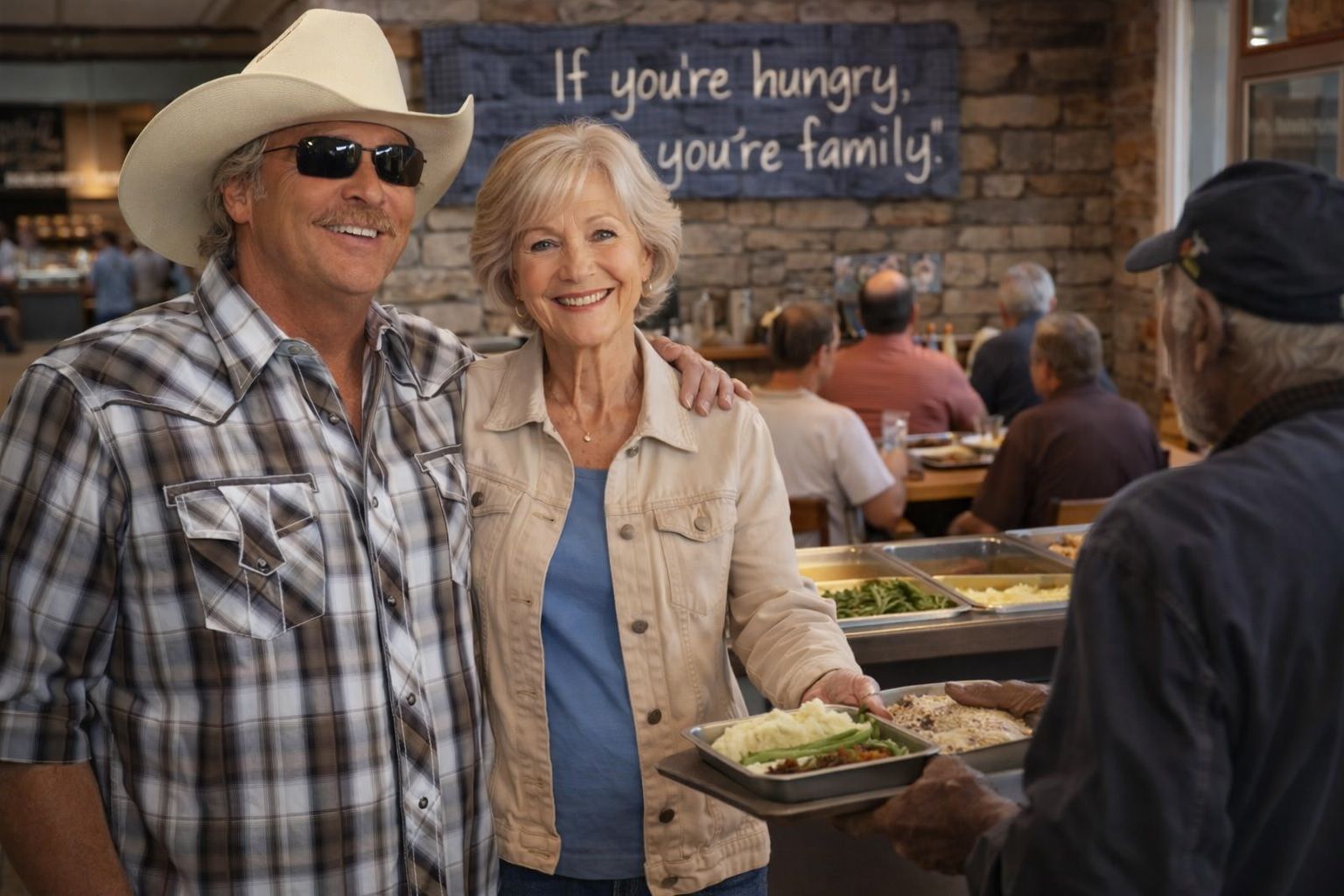 There are stories that feel almost too perfect for the modern world — stories that move with the gentle rhythm of a country ballad, where hardship meets grace, and where the past returns not as a burden, but as a promise fulfilled. The circulating narrative about Alan Jackson and a small-town diner is one such story. Whether fully verified or not, it has captured something deeper than mere facts. It has touched a cultural nerve — a longing for sincerity, humility, and the idea that success does not erase memory, but honors it.