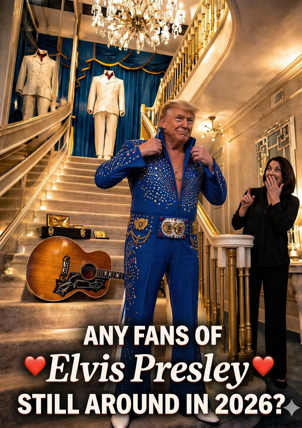 There are rare moments in public life when two very different kinds of influence briefly meet in the same room—and instead of competing, one quietly absorbs the other. That is the essence of what unfolded when Donald Trump stepped inside Graceland, the long-preserved home of Elvis Presley. It was not merely a visit. It was not simply a headline. It was something far more layered: a living encounter between modern political authority and a cultural legacy that has outlived generations of change.