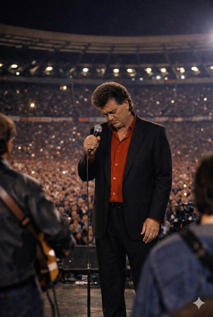 On a cool London evening inside Wembley Stadium, nearly ninety thousand people gathered expecting what they had always known from Conway Twitty — steadiness, authority, and that unmistakable baritone that could calm a restless room before the first verse even finished forming.